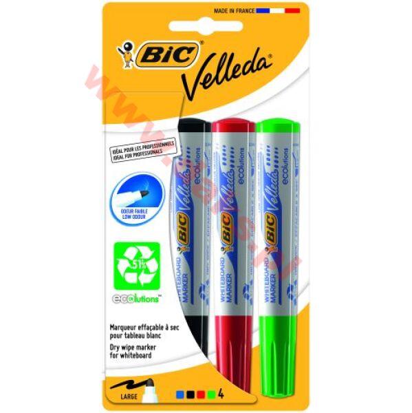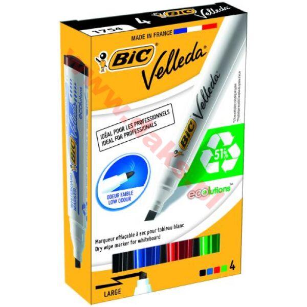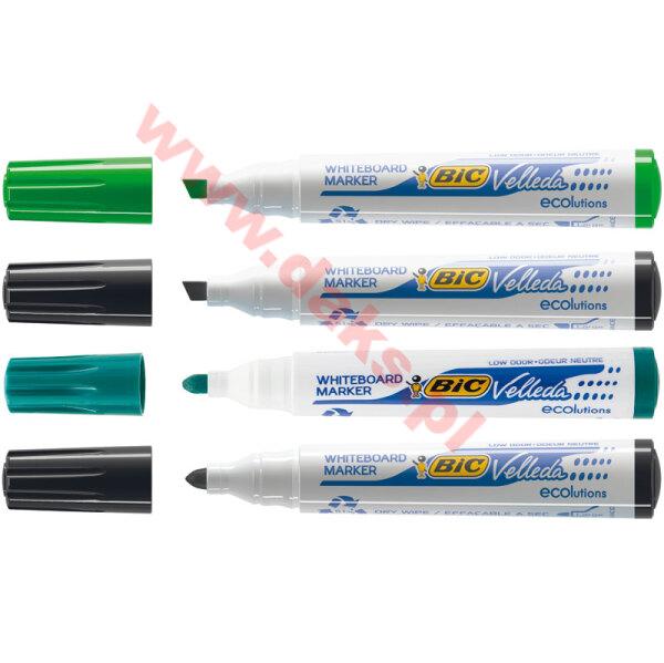 Marker do białych tablic BIC Velleda ze ściętą końcówką - mix kolorów(4)Marker do białych tablic BIC Velleda - zestaw 4 sztuki * marker do białych tablic suchścieralnych ze ściętą końcówką * tusz na bazie alkoholu łatwy do starcia * długa linia pisania * skuwka i zakończenie markera w kolorze tuszu* w komplecie 4 markery w różnych kolorach * jednostka sprzedaży: 1 komplet -