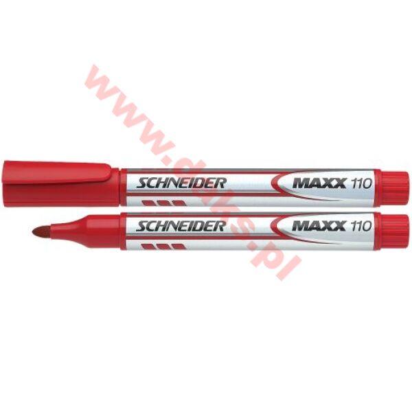 Marker do białych tablic SCHNEIDER Max 110 z okrągłą końcówką - czerwonyMarker do białych tablic SCHNEIDER Max110 * marker do białych tablic suchościeralnych z okragłą końcówką * długą linią pisania * skuwka i zakończenie markera w kolorze tuszu * w kolorze : czerwonym * jednostka sprzedaży: 1 sztuka lub 1 komplet( 4 sztuki) -