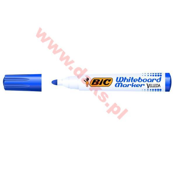 Marker do białych tablic BIC Velleda z okrągłą końcówką - niebieskiMarker do białych tablic BIC Velleda * marker do białych tablic suchścieralnych z okragłą końcówką * tusz na bazie alkoholu łatwy do starcia * długa linia pisania * skuwka i zakończenie markera w kolorze tuszu * w kolorze niebieskim * jednostka sprzedaży: 1 sztuka -