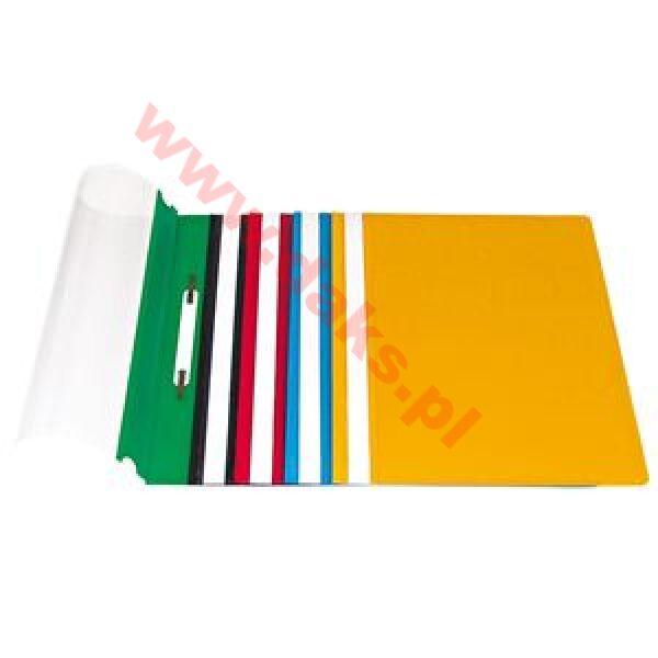 - Skoroszyt miękki PP D.RECT - A4/żółty/0090010/(20szt)Skoroszyt miękki D.RECT * kolor żółty * format A4 * bez perforacji * przednia okładka przeźroczysta, tylna kolorowa * wyprodukowany z PP * wyposażony w wymienny pasek do opisu * zaokrąglone narożniki * zawiera metalowe wąsy * w opakowanniu 25 sztuk * jednostka sprzedaży: 1opakowanie