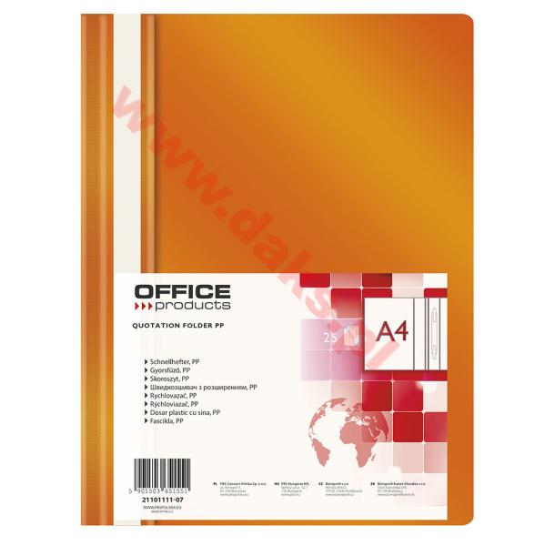 - Skoroszyt miękki PP OFFICE PRODUCTS - A4/pomarańczowy/(25szt.)Skoroszyt miękki PP OFFICE PRODUCTS * ekonomiczny * miękki * polipropylenowy * niewpinany do segregatora * w kolorze pomarańczowym * strona przednia przeźroczysta - grubość PP - 100?m; strona tylna kolorowa - grubość 150?m * mieszczący ok. 200 kartek * możliwość dwustronnego opisu * na pasku brzegowym kieszonka umożliwiająca wymianę paska * format A4 * wymiary: 225x305mm * w opakowaniu 25 sztuk * jednostka sprzedaży : 1 opakowanie
