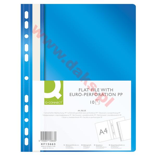 - Skoroszyt wpinany do segregatora-miękki PP Q-CONNECT - A4/niebieski(10szt).Skoroszyt wpinany do segregatora-miękki PP Q-CONNECT * wpinany do segregatora * w kolorze niebieskim * strona przednia przeźroczysta - grubość 120?m; strona tylna kolorowa - grubość 180?m * mieszczący ok. 200 kartek * możliwość dwustronnego opisu na pasku brzegowym * kieszonka umożliwiająca wymianę paska posiada 11 dziurek do wpięcia * format A4 * wymiary: 225x305mm ** w opakowaniu 10 sztuk * jednostka sprzedaży :1 opakowanie