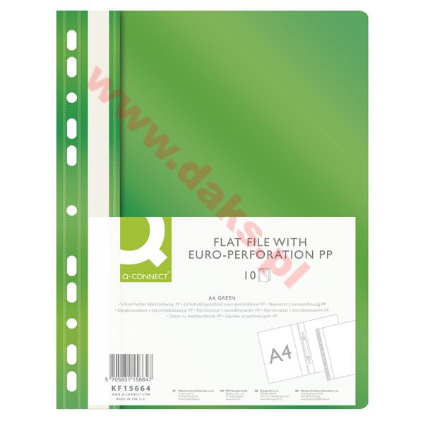 - Skoroszyt wpinany do segregatora-miękki PP Q-CONNECT - A4/zielony(10szt).Skoroszyt wpinany do segregatora-miękki PP Q-CONNECT * wpinany do segregatora * w kolorze zielonym * strona przednia przeźroczysta - grubość 120?m; strona tylna kolorowa - grubość 180?m * mieszczący ok. 200 kartek * możliwość dwustronnego opisu na pasku brzegowym * kieszonka umożliwiająca wymianę paska posiada 11 dziurek do wpięcia * format A4 * wymiary: 225x305mm ** w opakowaniu 10 sztuk * jednostka sprzedaży :1 opakowanie