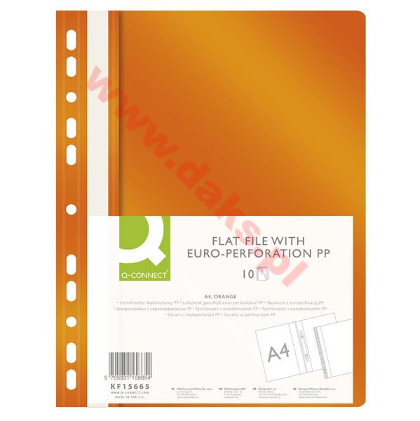 - Skoroszyt wpinany do segregatora-miękki PP Q-CONNECT - A4/pomarańczowy(10szt).Skoroszyt wpinany do segregatora-miękki PP Q-CONNECT * wpinany do segregatora * w kolorze pomarańczowym * strona przednia przeźroczysta - grubość 120?m; strona tylna kolorowa - grubość 180?m * mieszczący ok. 200 kartek * możliwość dwustronnego opisu na pasku brzegowym * kieszonka umożliwiająca wymianę paska posiada 11 dziurek do wpięcia * format A4 * wymiary: 225x305mm ** w opakowaniu 10 sztuk * jednostka sprzedaży :1 opakowanie
