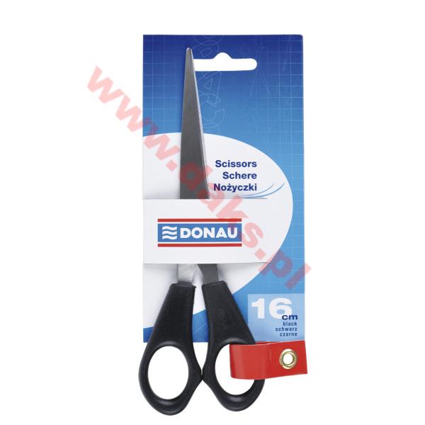 Nożyczki biurowe DONAU - 16cm/czarne/(1szt.)Nożyczki biurowe DONAU * wykonane z wysokiej jakości nierdzewnej stali * cechują się niezwykle wytrzymałą rączką odporną na pęknięcia i odpryski * rączka w kolorze czarnym * uniwersalne - do cięcia papieru, kartonu, tektury, zdjęć, taśmy samoprzylepnej, itp. * długość: 16cm * jednostka sprzedaży :1 sztuka -