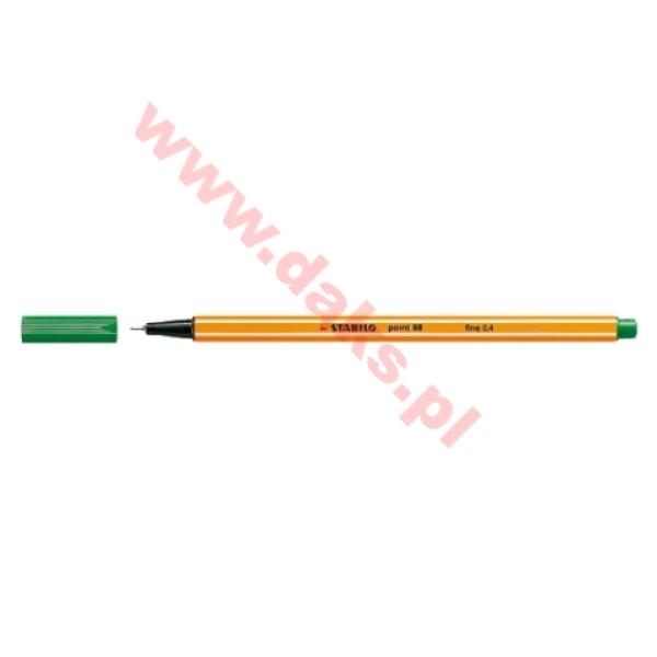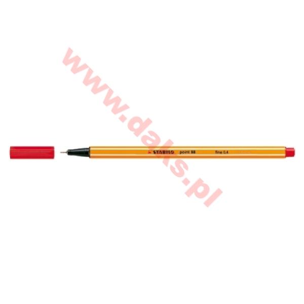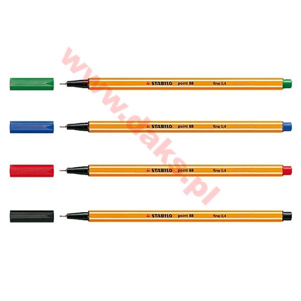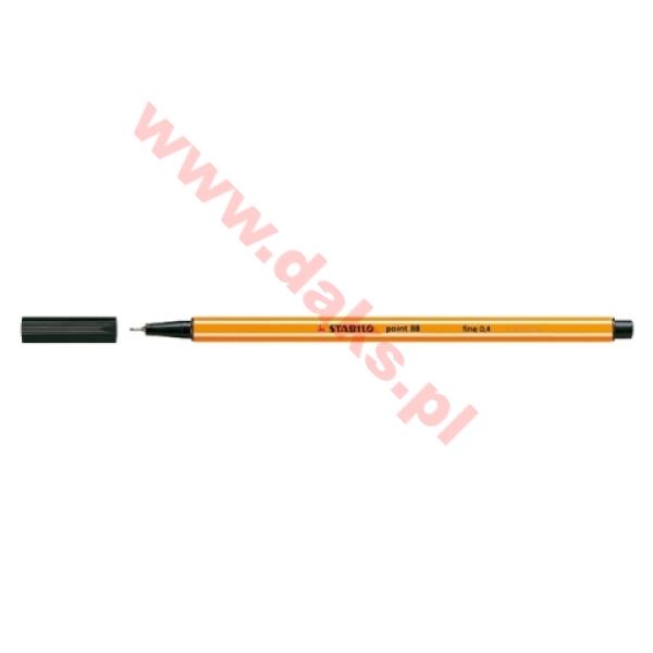 - Cienkopis STABILO Point 88 - czarny- do pisania, podkreślania, kreślenia i kolorowania - mocna, oprawiona w metal końcówka odporna na złamania i rozwarstwienia - wysoki komfort pisania aż do całkowitego wyczerpania tuszu - grubość linii - 0,4 mm - wentylowana skuwka umożliwia oddychanie w przypadku połknięcia