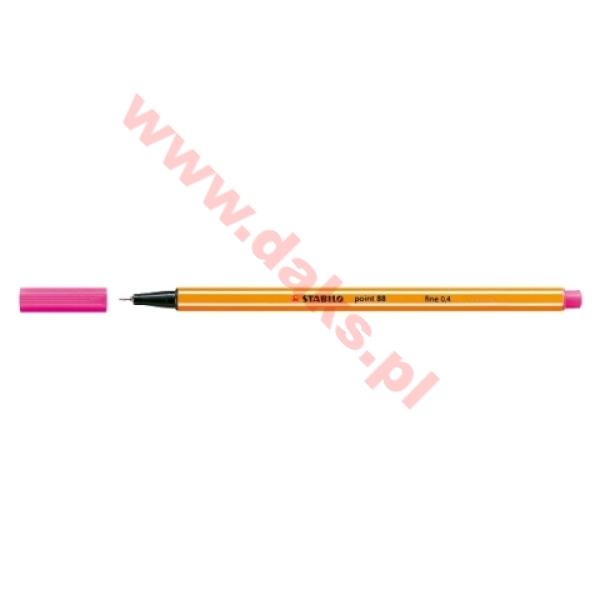 - Cienkopis STABILO Point 88 - różowy- do pisania, podkreślania, kreślenia i kolorowania - mocna, oprawiona w metal końcówka odporna na złamania i rozwarstwienia - wysoki komfort pisania aż do całkowitego wyczerpania tuszu - grubość linii - 0,4 mm - wentylowana skuwka umożliwia oddychanie w przypadku połknięcia