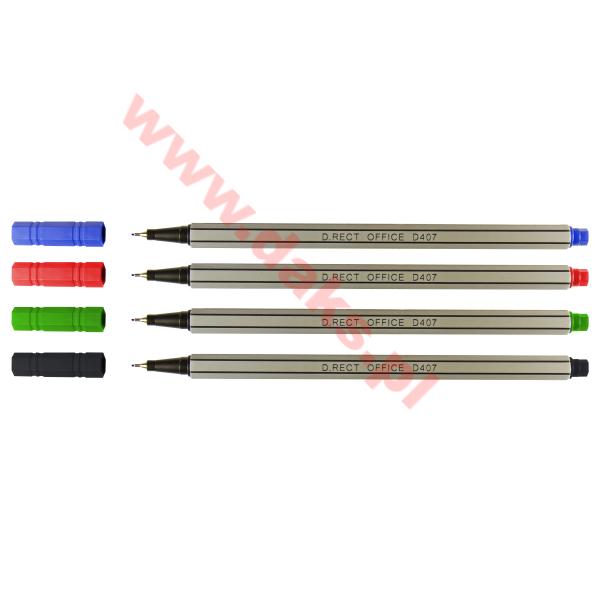 - Cienkopis D.RECT D400 - czerwony/105232Cienkopis D.RECT D400 * wyróżniający się kolorystyką obudowy oraz długością linii pisania cienkopis dostępny w 4 podstawowych kolorach lub w zestawach kolorów * wewnętrzny wkład tuszujący o długości 12,5cm * posiada wentylowaną skuwkę w kolorze tuszu * kolorystyka obudowy umożliwia łatwe odnajdywanie cienkopisu wśród innych akcesoriów biurowych * fibrowa końcówka oprawiona w metal * linia pisania: 0,4mm * kolor: czerwony * jednostka sprzedaży: 1 sztuka