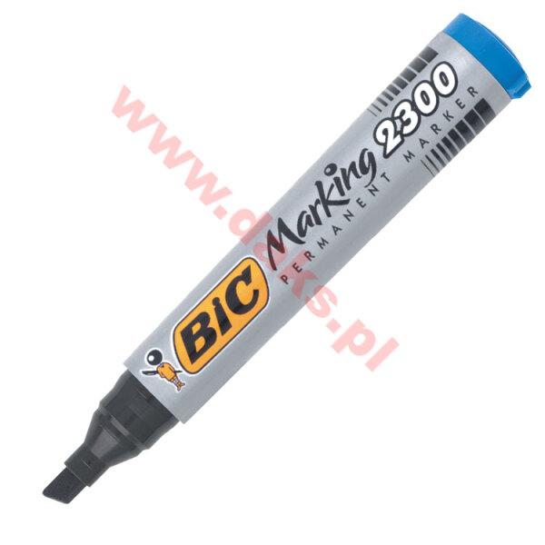 - Marker permanentny BIC NB 2300 ze ściętą końcówką - niebieski- tusz na bazie alkoholu, bezzapachowy - bez skuwki nie wysycha przez 3 tygodnie - zablokowana końcówka nie ugina się i nie cofa pod naciskiem - długość linii pisania dla końcówki okrągłej 1400 m, dla ściętej 1100 m - okrągła końcówka - średnica 5,5 mm, grubość linii pisania 1,7 mm - ścięta końcówka - grubość linii pisania 3,1 - 5,3 mm