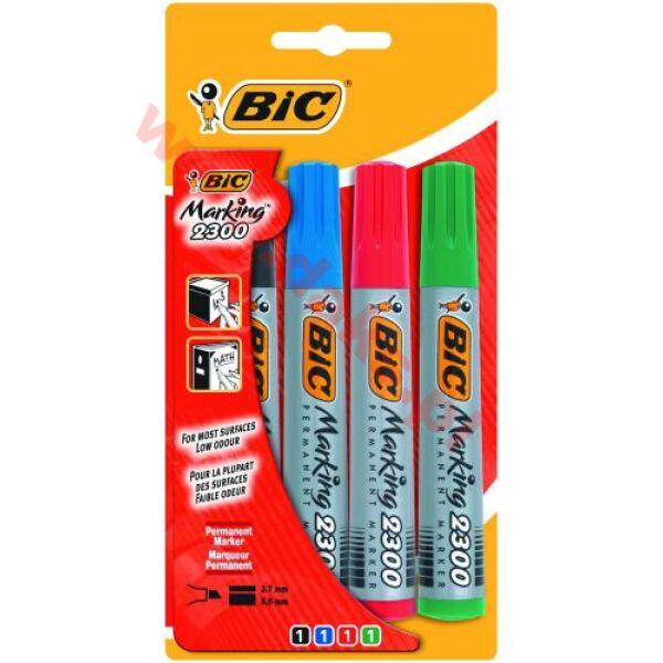 - Marker permanentny BIC NB 2300 ze ściętą końcówką - komplet 4szt.Marker permanentny BIC NB 2300 * komplet 4 markerów permanentnych na bazie alkoholu * odporne na wysychanie (bez skuwki nie wysycha przez 3 dni) * przeznaczone do opisywania kartonów/znakowania części metalowych itp. * z końcówką ściętą * długość linii pisania 1500 m. * w kolorze czarnym/czerwonym/zielonym/niebieskim * w komplecie 4 sztuki * jednostka sprzedaży: 1 komplet