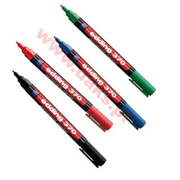 - Marker permanentny EDDING 370 z okrągłą końcówką - zielonyMarker permanentny EDDING 370 * bardzo dobre do pisania, kolorowania i znakowania na niemal wszystkich rodzajach powierzchni, również na metalu, szkle czy plastiku * trwały, bezwonny tusz, do ponownego napełniania * końcówka okrągła * w kolorze zielonym * w opakowaniu: 10 sztuk * jednostka sprzedaży :1 sztuka
