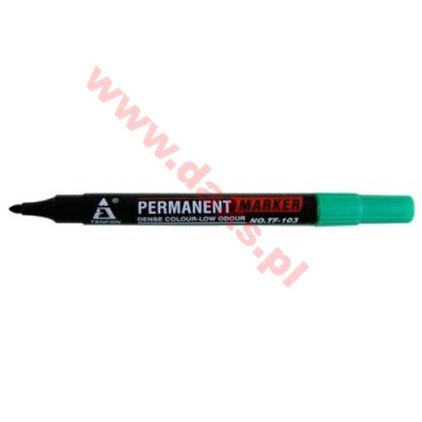 - Marker permanentny Q-CONNECT z okrągłą końcówką - zielonyMarker permanentny Q-CONNECT * marker z okrągłą końcówką * kolor zielony * grubość linii pisania: 1,5-3mm * długość linii pisania: 300m * posiada skuwkę z klipsem * tusz odporny na wodę i rozmazywanie * nietoksyczny * jednostka sprzedaży : 1 sztuka