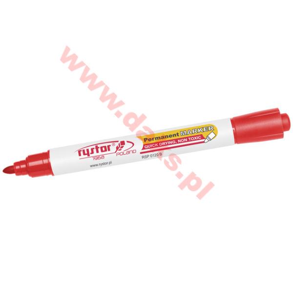 - Marker permanentny RYSTOR RSP-0120 z okrągłą końcówką - czerwonyMarker permanentny RYSTOR RSP-0120 * do pisania po papierze, szkle, metalu i plastiku * wodoodporny, niezmywalny, szybkoschnący i nietoksyczny tusz * nie blaknie pod wpływem promieni słonecznych * zgodny z normą ASTM D-4236 i EN-71 * okrągła końcówka pisząca * długość linii pisania: 200 m * grubość linii pisania: 2-3 mm w zależności od siły nacisku * kolor: czerwony * ilość markerów w opakowaniu: 10 sztuk * jednostka sprzedaży: 1 sztuka