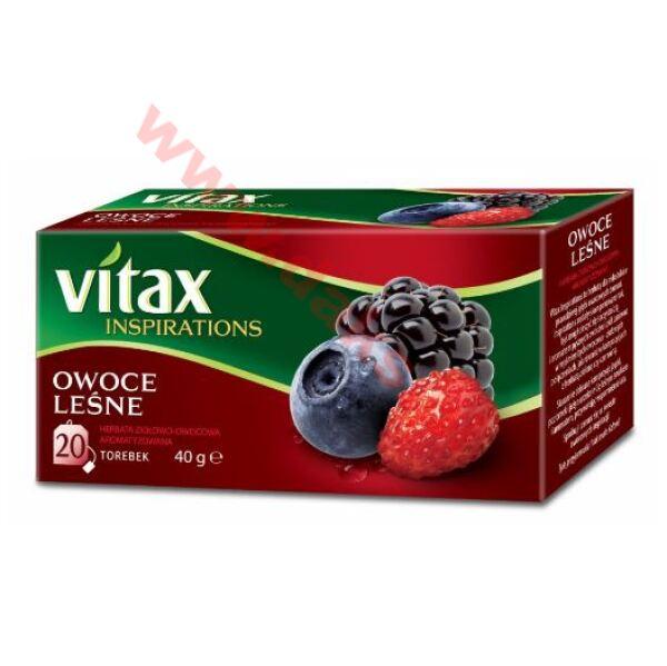 Herbata VITAX Inspirations - owoce leśne/(20szt.)Herbata VITAX Inspirations - Owoce leśne * to herbaty dla miłośników prawdziwej głębi owocowych doznań * Inspirations zostały skomponowane tak, byś mógł cieszyć się prawdziwą soczystością i aromatem pysznych owoców i ziół, zarówno w wyśmienitych owoco - ziołowych połączeniach, jak również w kompozycjach z herbatą zieloną czy czerwoną* w torebkach * w opakowaniu 20 torebek * jednostka sprzedaży: 1 opakowanie