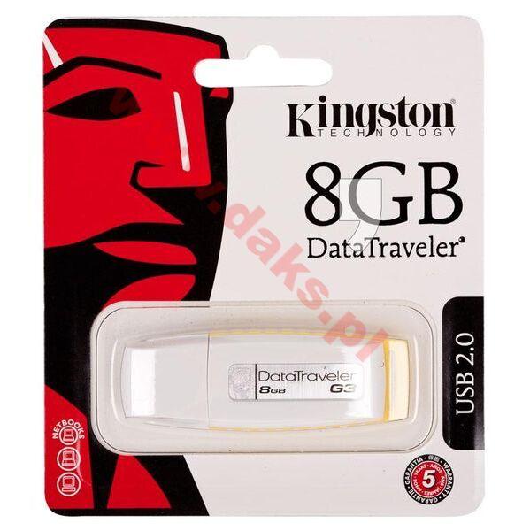 - Pamięć przenośna KINGSTON Data Traveler - 8GB/USB 2.0/3.0Pamięć przenośna KINGSTON Data Traveler * podręczny dysk zewnętrzny do zapisu plików prezentacyjnych/zdjęć/itp. * współpracuje ze wszystkimi systememi operacyjnymi * pamięć 8GB * 5 letnia gwarancja zapisu danych * jednostka sprzedaży:1 sztuka