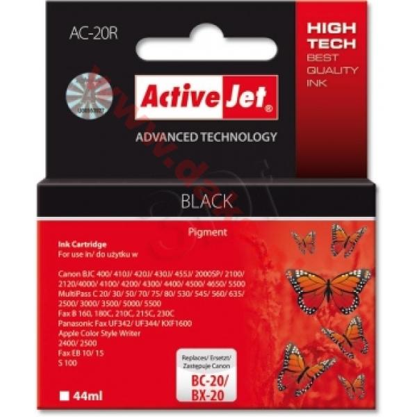- Tusz kompatybilny ACTIVEJET BX-20 do drukarek atramentowych CANON - czarnyTusz kompatybilny ACTIVEJET BX-20 * do drukarek atramentowych: Canon b160, b180c, b210, b215, b230c, b310, b320, b340, b360,bx20, c20, c30, c50, c70, c75, c80,eb10,fax : b160, b210, b210c, b215c, b230c, d160, d180, d215c, multipass c75, Telekom T: fax 362, fax 362pc, fax 363pc, fax 5500, fax 5830, Panasonic UF 940 * wydajność : 900 stron A4 przy 5% pokryciu(zgodnie z normą ISO/IEC 19752)* pojemność 40ml * kolor czarny * jednostka sprzedaży : 1sztuka