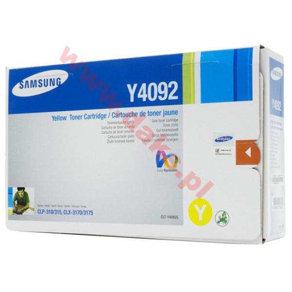 - Toner SAMSUNG CLT-Y4092S do drukarek laserowych SAMSUNG - yellowToner SAMSUNG CLT-Y4092S * do drukarek laserowych SAMSUNG : CLP 310, 310K, 310N, 315, 315K, 315N, 310NK, 315W, 315WK , CLX 3170FN, 3170N, 3175, 3175FN, 3175FW, 3175N * wydajność : 1 000 stron A4 przy 5% pokryciu(zgodnie z normą ISO/IEC 19752) * kolor yellow * jednostka sprzedaży : 1sztuka