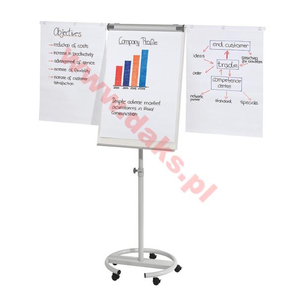 - Flipchart na trójnogu Bi-OFFICE - 700x1020mm/GEA2306315- tablica o powierzchni suchościeralno-magnetycznej - stabilna, lekka konstrukcja z trójnogiem - wąska, aluminiowa rama - regulowana wysokość - wyposażony w plastikową półkę na markery, gąbkę, magnesy - unoszony zacisk umożliwia łatwą i sprawną wymianę bloku - rozmiar flipcharta ze stelażem: 70x195 cm, wymiary tablicy: 70 x 102 cm