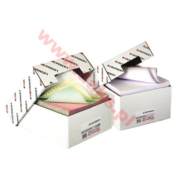 - Papier komputerowy EMERSON 240mmx12cali/kolor nadruk (1+3)Papier komputerowy EMERSON * bezdrzewny, bezpyłowy i bezchlorowy papier do drukarek * trwałość kopii 25 lat * papier nietoksyczny i nieszkodliwy dla zdrowia * w wersji kolor z nadrukiem * wymiary: 240mmx12cali * ilość warstw: 1+3 * jednostka sprzedaży: 1 karton