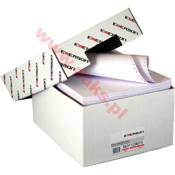 - Papier komputerowy EMERSON 240mmx12cali/kolor nadruk/(1+1)Papier komputerowy EMERSON * bezdrzewny, bezpyłowy i bezchlorowy papier do drukarek * trwałość kopii 25 lat * papier nietoksyczny i nieszkodliwy dla zdrowia * w wersji kolor z nadrukiem * wymiary: 240mmx12cali * ilość warstw: 1+1 * jednostka sprzedaży: 1 karton