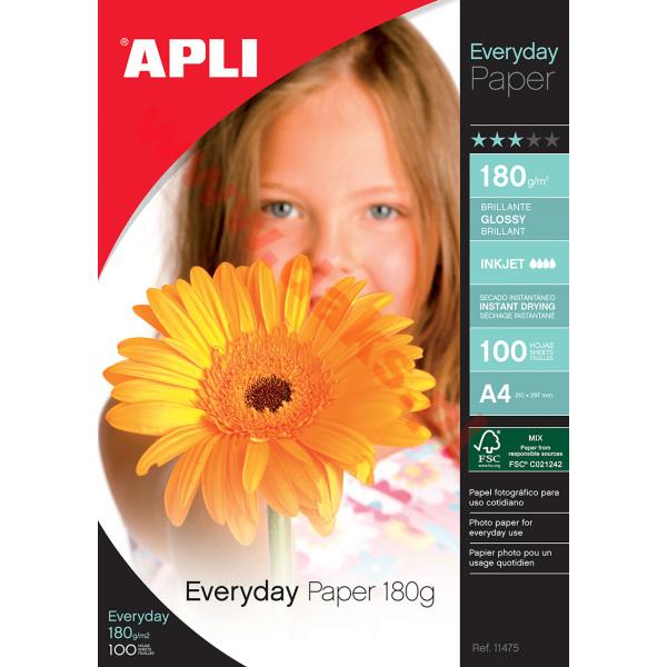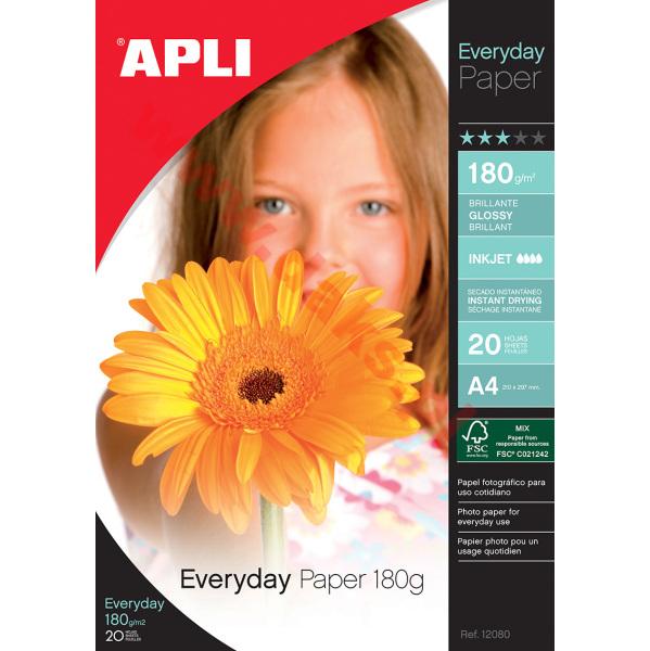 Papier fotograficzny A4 APLI do drukarek atramentowych - 180gm2/(20)/AP12080Papier fotograficzny APLI do drukarek atramentowych * do drukowania plakatów, zdjęć i wszelkiego rodzaju grafik * błyszczący, biały doskonale odzwierciedla wszystkie kolory * gramatura: 180 g/m2 * posiada certyfikat FSC * w opakowaniu 20 arkuszy * jednostka sprzedaży: 1 opakowanie -
